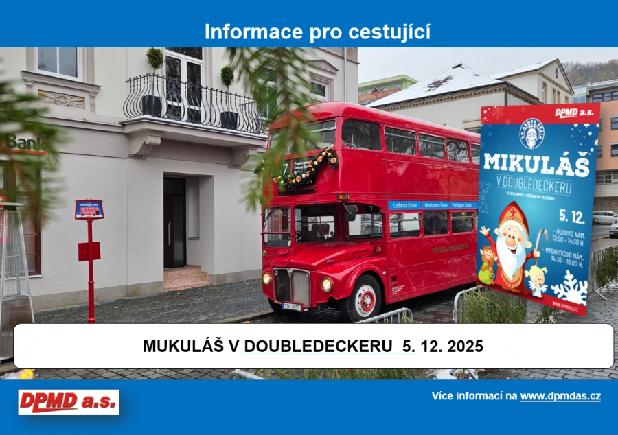 Dopravní podnik města Děčína (DPMD) s potěšením oznamuje, že i letos připravuje pro děti tradiční a oblíbenou akci Mikuláš v DOUBLEDECKERU!